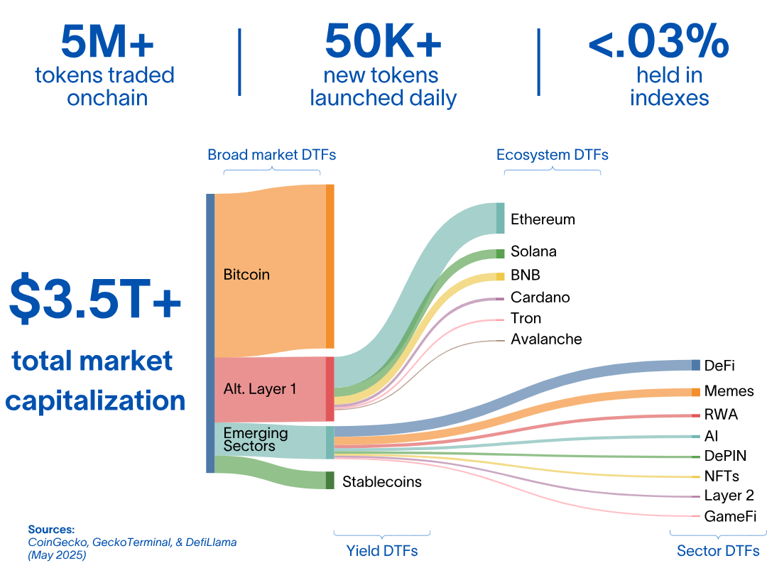 Index DTFs enable diversified exposure previously impossible on-chain. Anyone can mint or redeem at real-time net asset value without intermediaries.