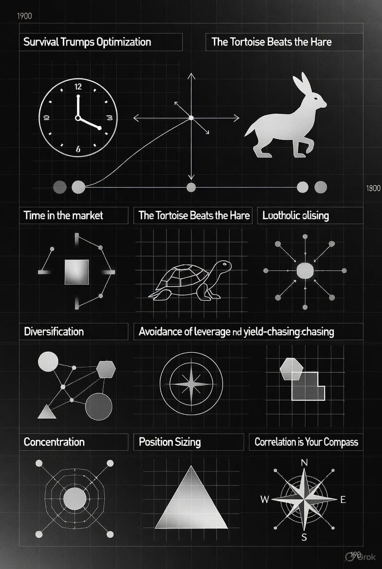 The tortoise beats the hare. As we documented in our fable analysis, the strategies that build lasting wealth are almost boring in their simplicity: diversification, position sizing, time in the market. The strategies that destroy wealth are exciting: leverage, yield-chasing, concentration. The hare's sprint attracts attention. The tortoise's steady pace builds wealth.
