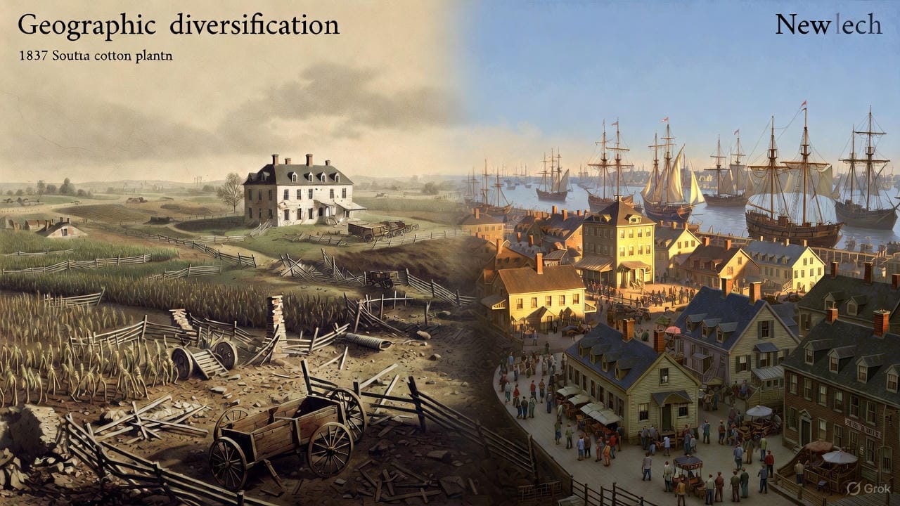 The Cotton Belt suffered the worst devastation. Cotton prices fell 25% in February and March 1837 alone, and since cotton receipts balanced America's trade deficit and provided foreign exchange earnings, the collapse rippled through the entire financial system [13]. Mississippi planters who had concentrated their wealth in cotton-backed credit found themselves bankrupt. Many fled to Texas to escape their creditors [14].