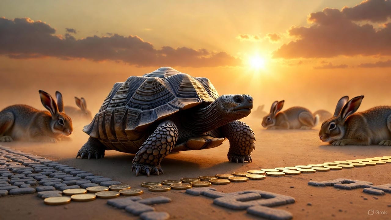 The hare sprints ahead, posts screenshots of gains, mocks the tortoise for being boring. Then the storm comes. The hare gets liquidated. The tortoise keeps moving.
